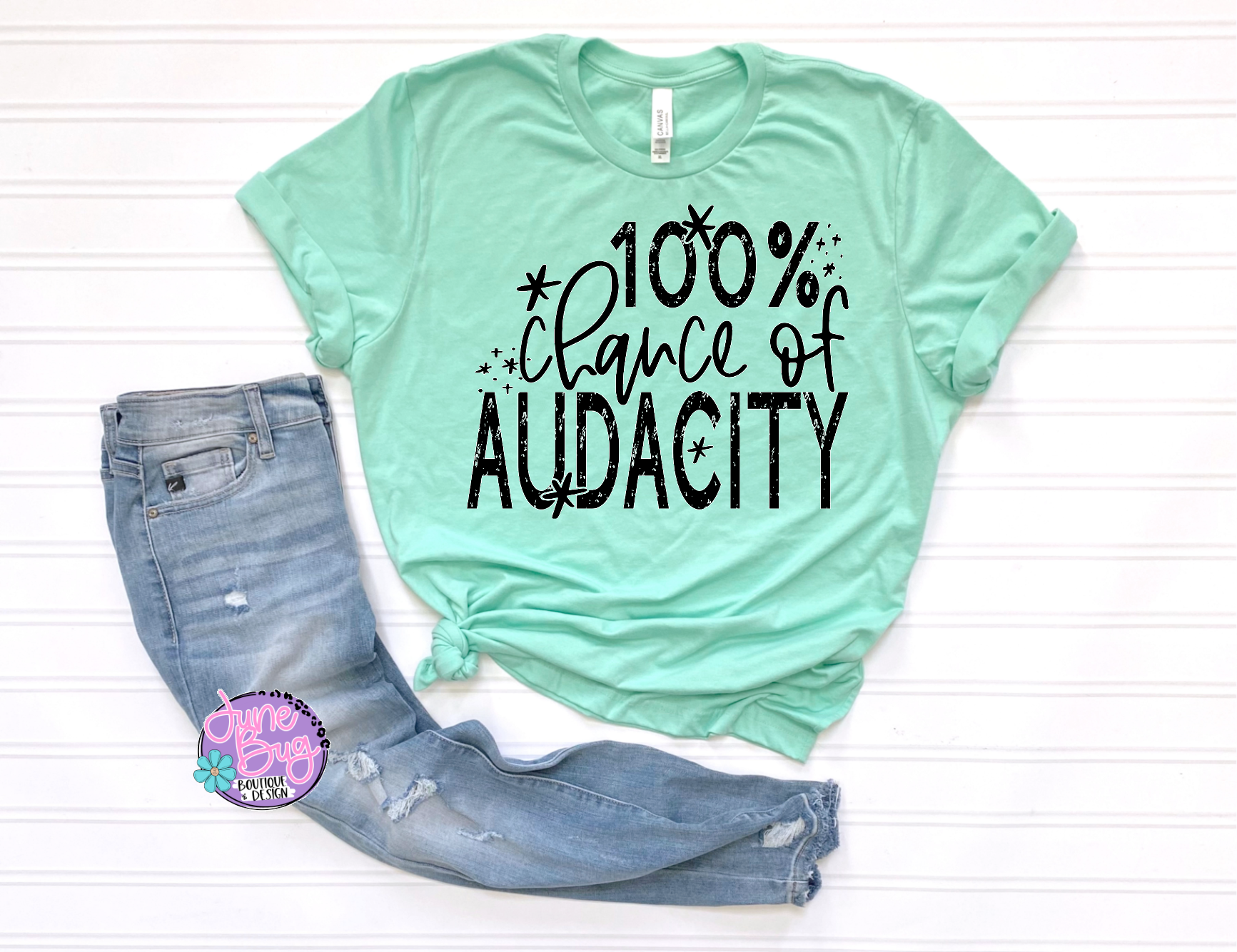 Shown on a Bella Canvas Short Sleeve Tee in Heather Mint.